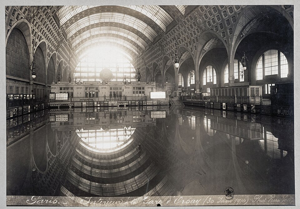 The elegant station, today the Musée d’Orsay, saw its platforms swallowed by the rising river.